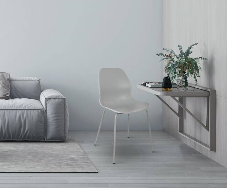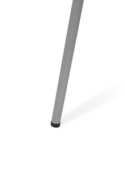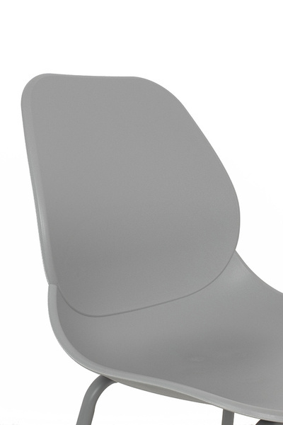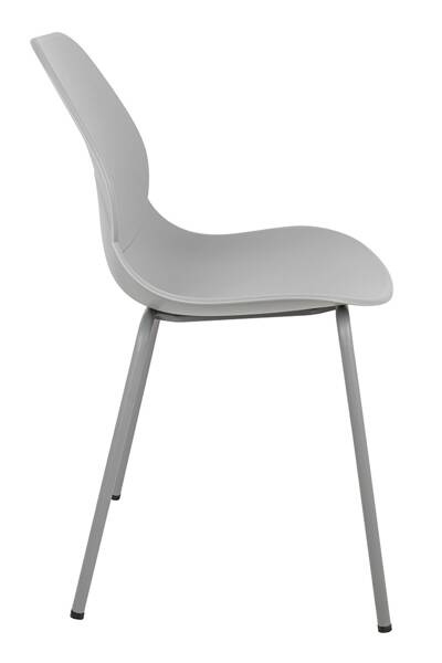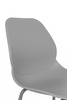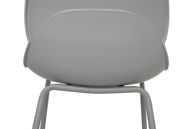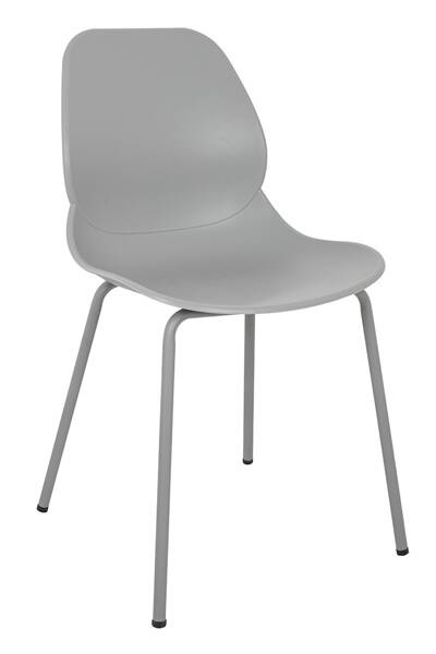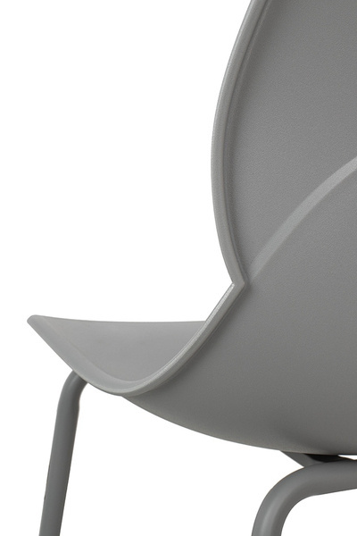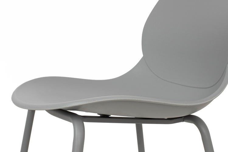 Profilowane siedzisko zostało wykonane z polipropylenu w kolorze szarym, a podstawa z metalu.