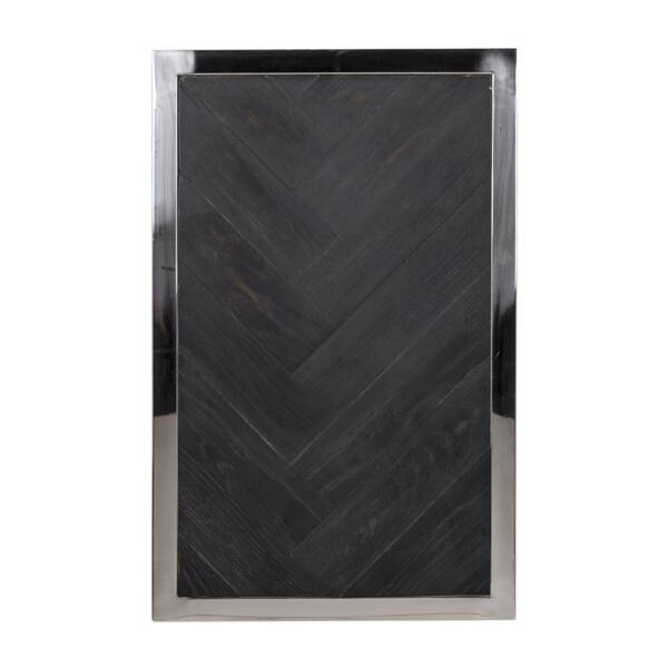 Kolekcja Blackbone Silver to połączenie szykownego forniru dębowego o wzorze jodełki w kolorystyce czarnej i srebrnej podstawy wykonanej ze stali nierdzewnej.