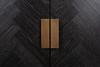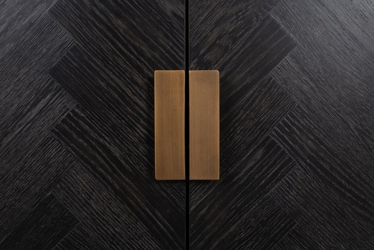 Kolekcja Blackbone Brass to połączenie szykownego forniru dębowego o wzorze jodełki w kolorystyce czarnej i mosiężnej podstawy wykonanej ze stali nierdzewnej.