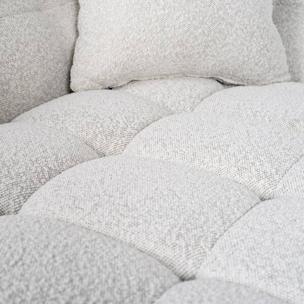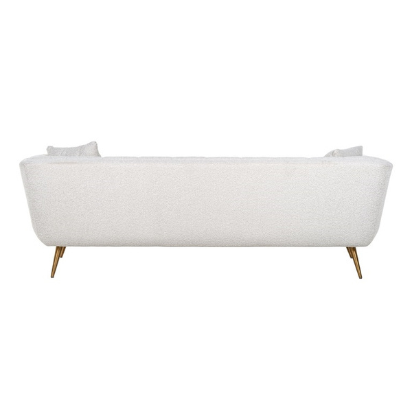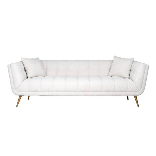 Huxley to solidnie wykonana sofa z drewnianej ramy i modnej białej tapicerki bouclé (100% poliester).