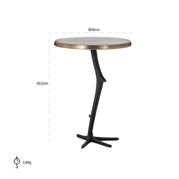 Złoty blat w kształcie okręgu zdobi szykowne aluminium.