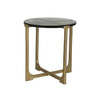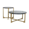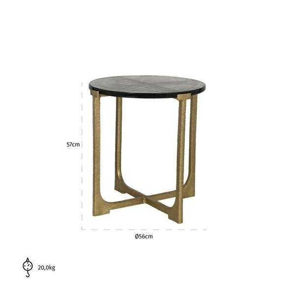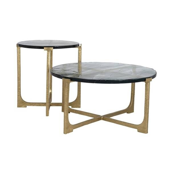 Stolik Vixen zdobi piękny okrągły blat z matowego ciemnego grubego szkła.