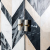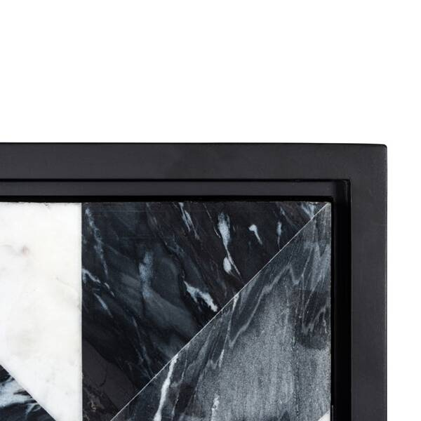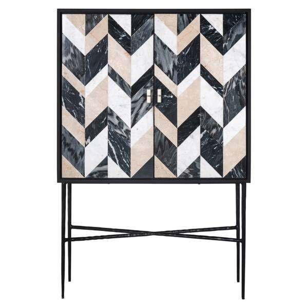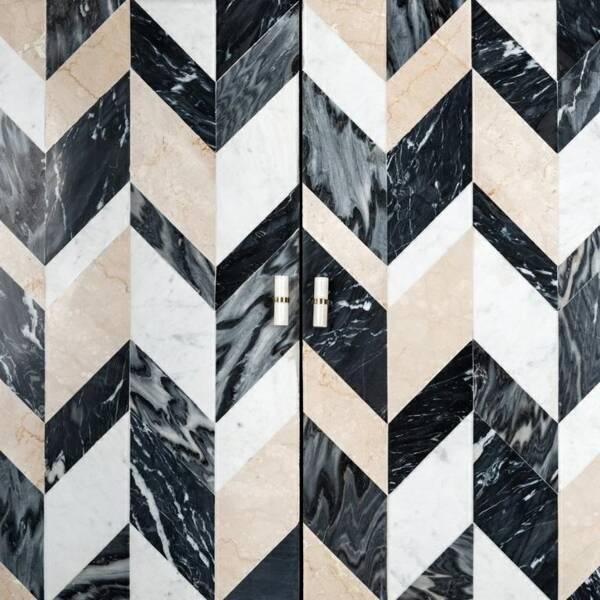 Wykonana została z marmuru, litego drewna mango i płyty MDF ubranej w geometryczny wzór.