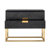 Kolekcja Blackbone Gold swój urok zawdzięcza pięknemu fornirowi dębowemu o wzorze jodełki w kolorystyce czarnej.