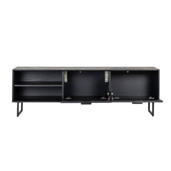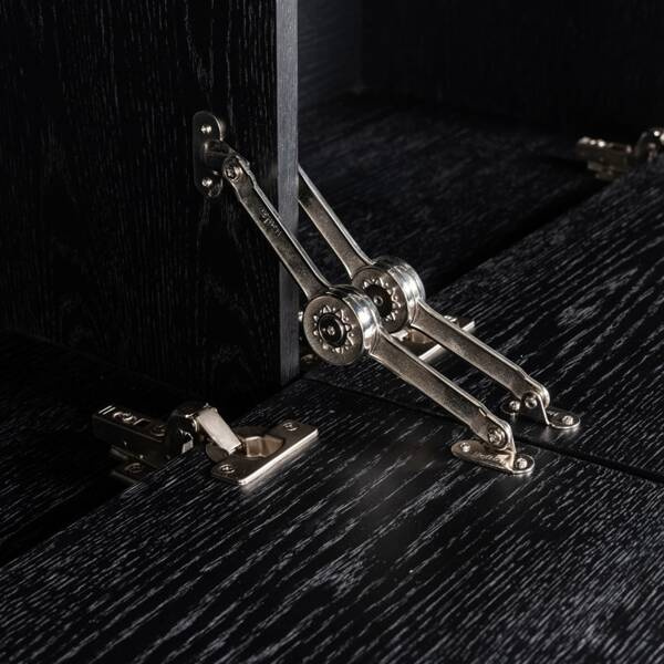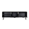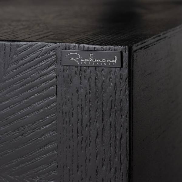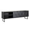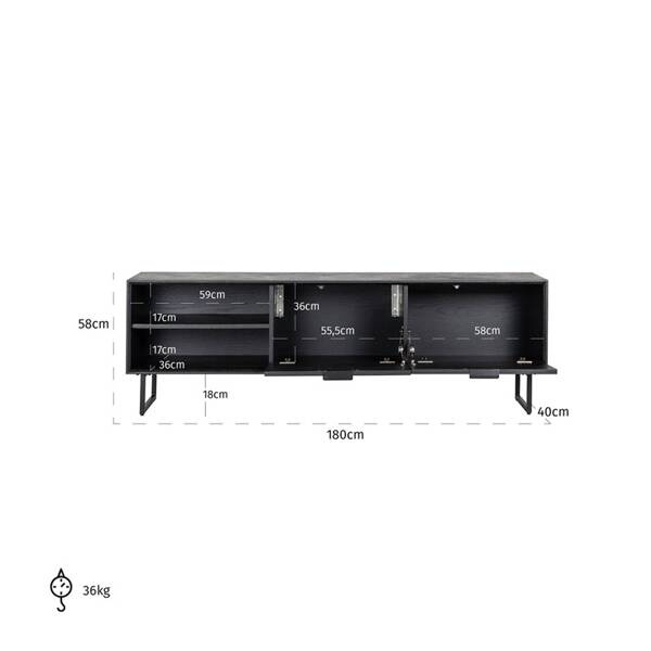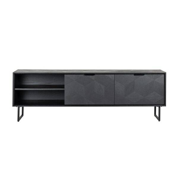RICHMOND szafka RTV BLAX. Kolekcja Blax to nowoczesna adaptacja klasycznego wzornictwa mebli z lat 60-tych podrasowana pod dzisiejsze czasy. Uroku dodają geometryczne wzory wykonane z czarnego forniru dębowego. Podstawa szafy RTV Blax opiera się na klasycznych czarnych nóżkach wykonanych z metalu. Jest to produkt bardzo praktyczny, dzięki 2 obszernym szufladom oraz 2 otwartym półkom, na których można umieścić akcesoria telewizyjne. Polecamy zapoznanie się z całą kolekcją. Wymiary: wys. 58 cm / szer. 180 cm / gł. 40 cm Waga netto: 36 kg.