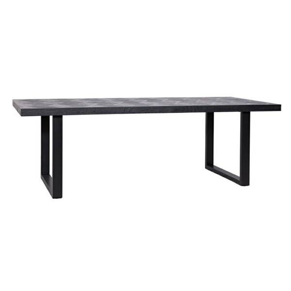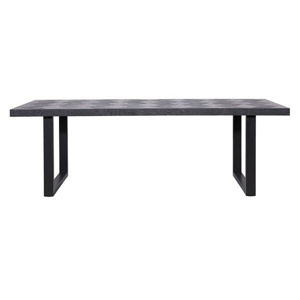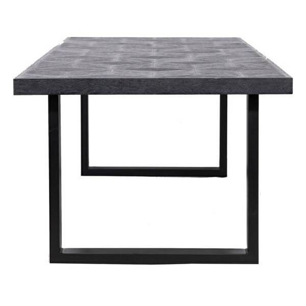 Prostokątny blat stolika to połączenie szykownej czerni z fornirem dębowym.