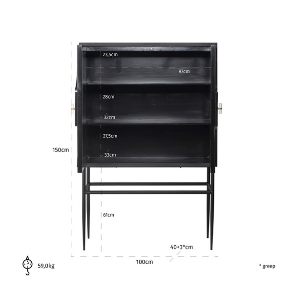 Wymiary: wys. 150 cm / szer. 100 cm / gł. 40 cm
