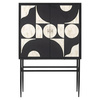 Posiada 2 drzwiczki zdobione różnymi kształtami geometrycznymi wykonanymi z kości zwierzęcej.