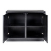Za pięknie zdobionymi drzwiami szafki kryją się 4 obszerne półki.