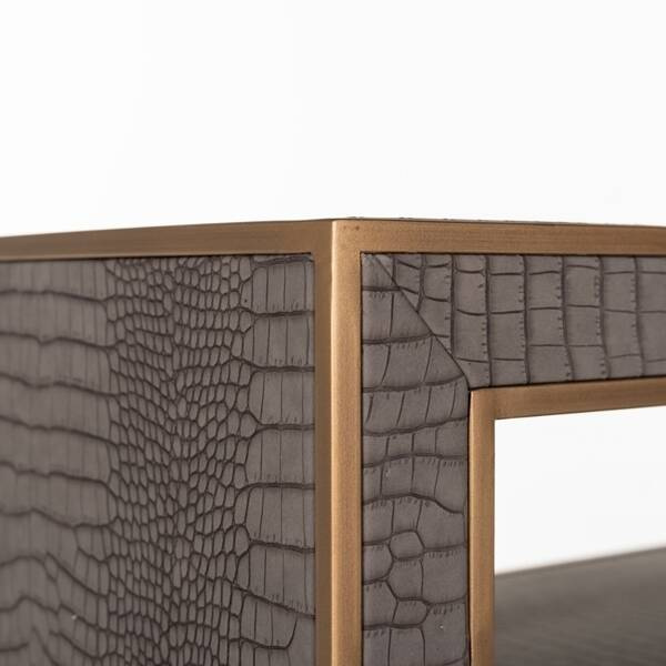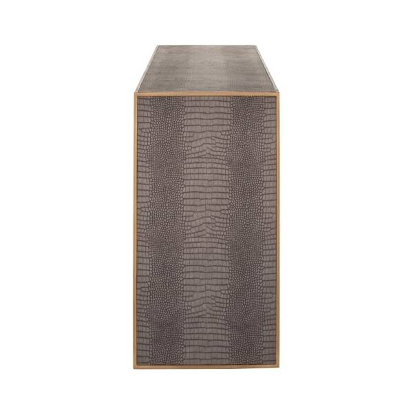 Konsola Lussio została stworzona w wyniku połączenia skóry PU z nadrukiem węża i metalowych detali w odcieniu szczotkowanego złota.