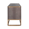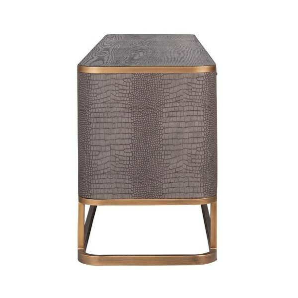 Charakteryzuje się precyzyjnym wykończeniem z teksturowanej sztucznej skóry shagreen oraz złotymi metalowymi elementami.