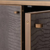 Blat szafki RTV zdobi natomiast piękny, elegancki fornir dębowy.