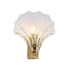 Lampa ścienna Albey to połączenie tradycyjnego i awangardowego designu, poprzez metalową strukturę w złotym kolorze i połączenie jej ze szklanym kloszem