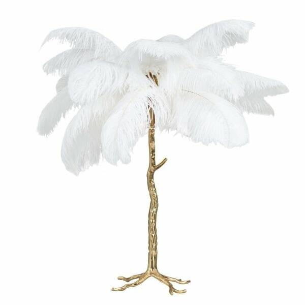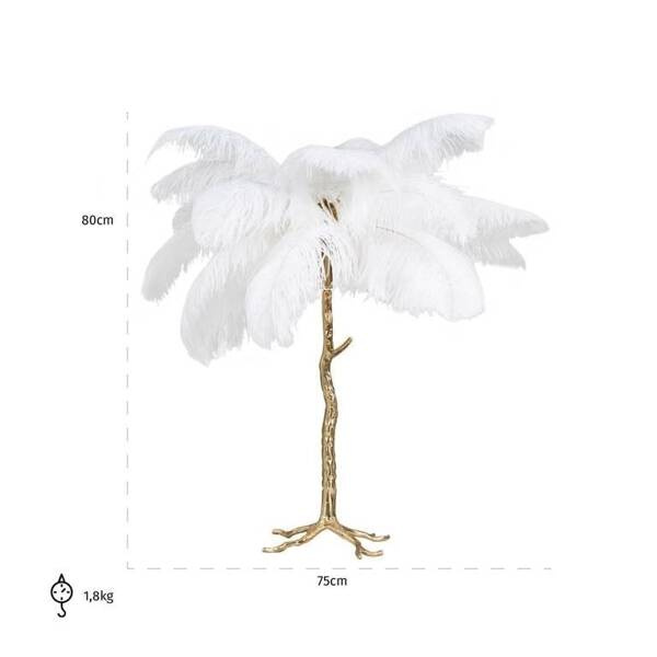 RICHMOND lampa stołowa UPANOVA biała. Producent Richmond Interiors stworzył niezwykle charakterystyczną lampę stołową z białych piór z podstawą w kolorze miedzi. Upanova doskonale pasuje do stylu Art Deco oraz chłodnych, nowoczesnych wnętrz. Ta lampa w kształcie drzewa nada ciekawy, tropikalny klimat Glam do każdego pomieszczenia. Świetnie sprawdzi się w salonach Beauty oraz salonie, pokoju dziecięcym czy sypialni jako ozdoba. Dostępne różne wersje kolorystyczne: czarna, różowa, khaki (beżowa). Polecamy skomponować ją z lampą wiszącą Anisha oraz podłogową Burlesque. Światło: 3 x E14 max. 40 W (brak w zestawie) Oprawa: wys. 80 cm / szer. 75 cm / gł. 75 cm Waga netto: 1,8 kg.