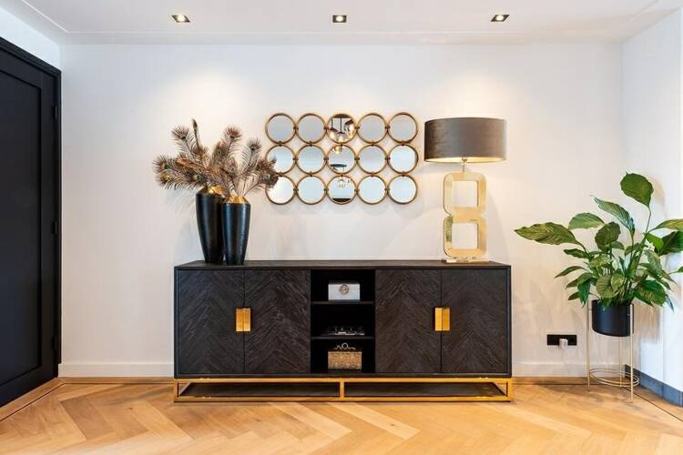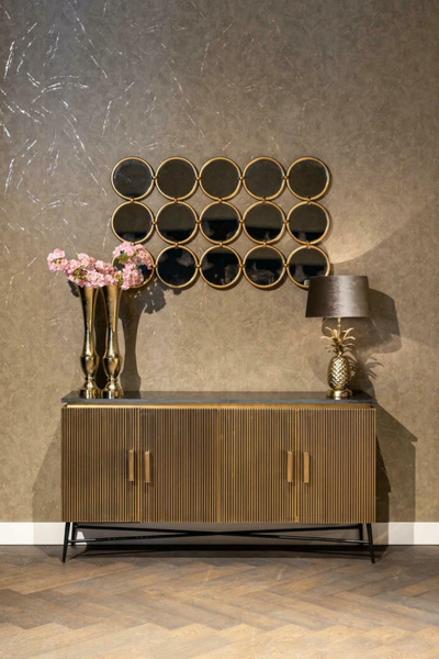 Coley marki Richmond Interiors to zestaw 15 okrągłych, designerskich luster oprawionych w złote ramy.