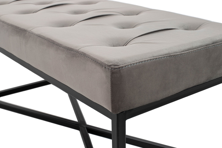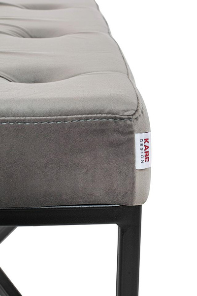 KARE ława CROSSOVER 90x40 cm szara. Wyściełana ławka welurowa w stylu nowoczesnym. Stylowa czarna rama ze stali i miękkie jak aksamit obicie siedziska z dekoracyjnymi guzikami, stanowią elegancką całość. Klasyka i współczesny design pozwoli na nowo tchnąć życie w wystrój mieszkania. Wymiary: wys. 40 cm / szer. 90 cm / gł. 90 cm Waga netto: 11,4 kg.