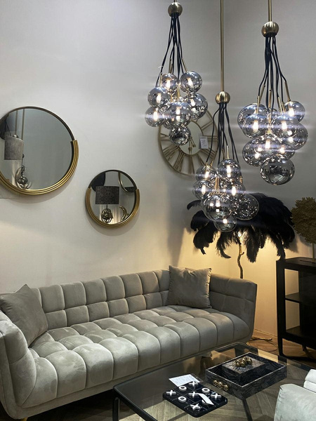 Dodatkowym akcentem są trzy delikatne złote rurki na dole lustra.