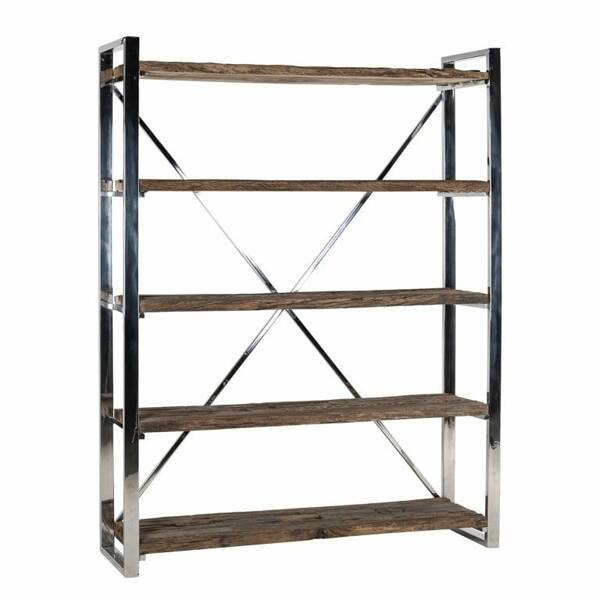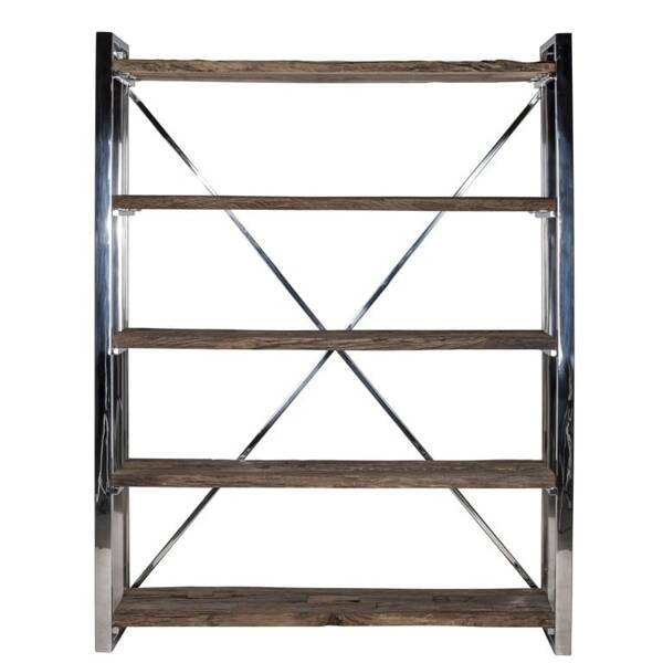 Wyposażony w pięć półek z drewna pochodzącego z recyklingu, oprawionych w elegancką stal nierdzewną.