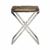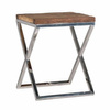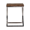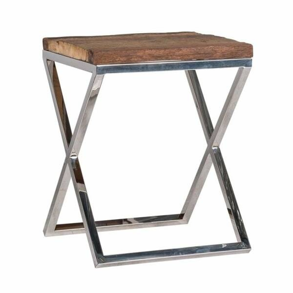 Podstawę wykonano ze srebrnej, błyszczącej stali nierdzewnej, natomiast blat z naturalnego drewna pochodzącego z recyklingu, co nadaje szykowny wygląd oraz wytrzymałość.