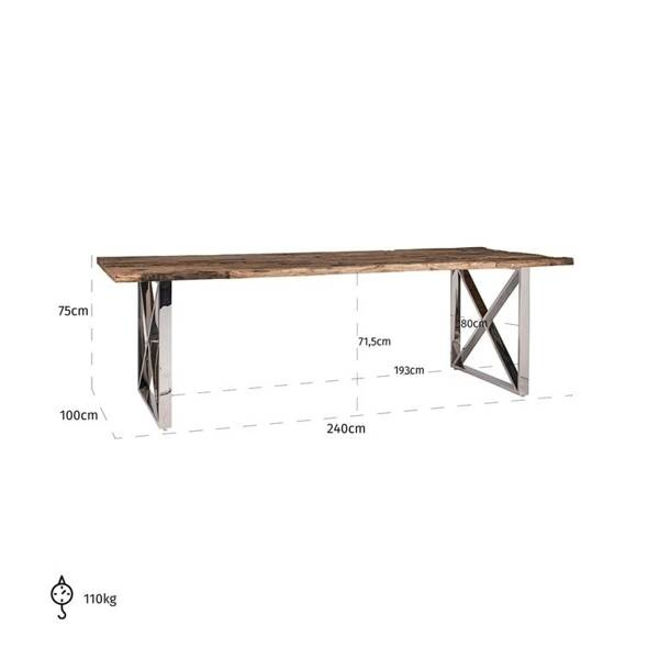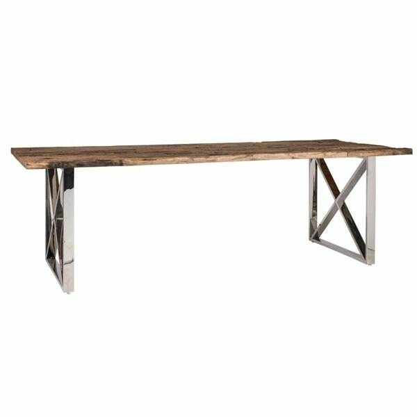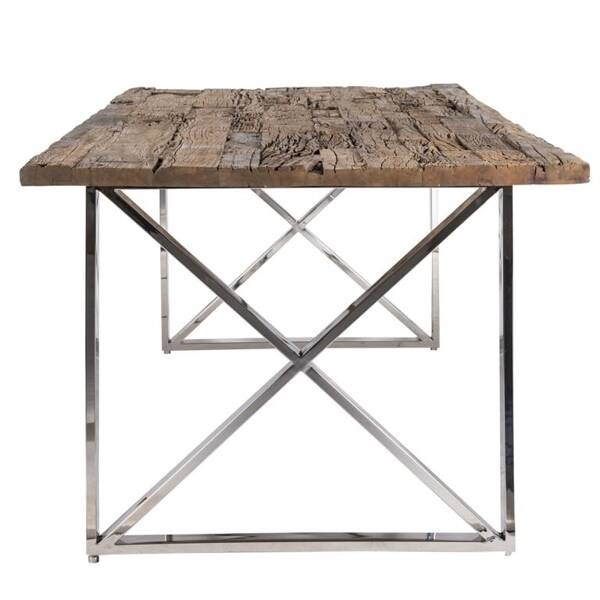 Kensington marki Richmond Interiors przyjemnie łączy rustykalny drewniany blat ze srebrną, błyszczącą podstawą wykonaną ze stali nierdzewnej.