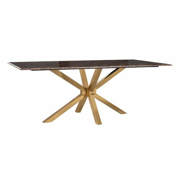 Szykowny wygląd zawdzięcza pięknemu blatowi wykonanemu z konglomeratu imitującego marmur Emperador oraz błyszczącej podstawie ze stali nierdzewnej w złotym kolorze.