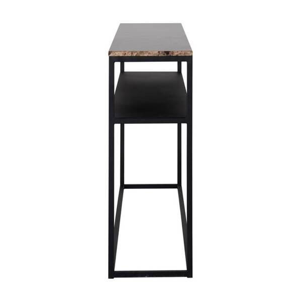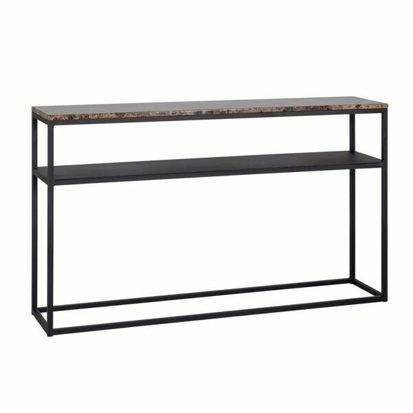 Kolekcja Orion wyróżnia się połączeniem klasycznej czarnej metalowej podstawy z eleganckim marmurowym blatem Emperador.