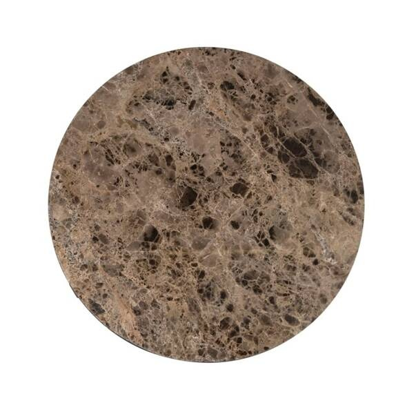 Kolekcja Orion wyróżnia się połączeniem klasycznej czarnej metalowej podstawy z eleganckim marmurowym blatem Emperador.