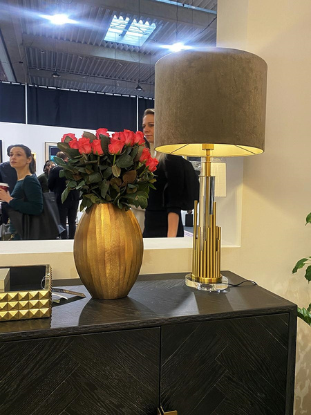 Wykończenie z aluminium w modnej złotej kolorystyce sprawia, że wazon ten wnosi do pomieszczenia eleganckiego charakteru.