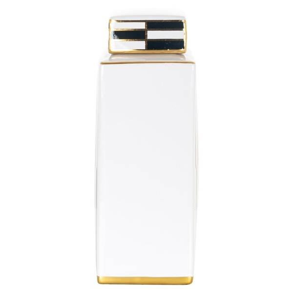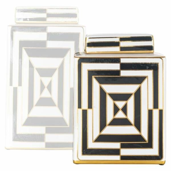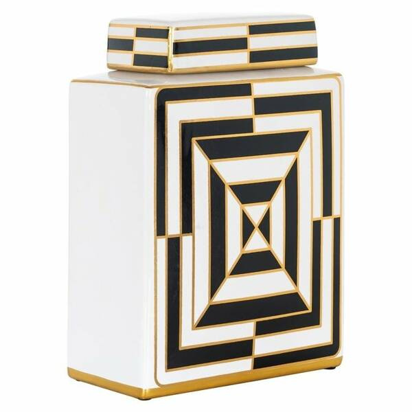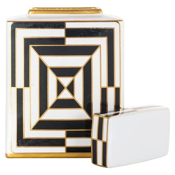 Całość wykonano z białej ceramiki z czarnymi i złotymi wzorami.