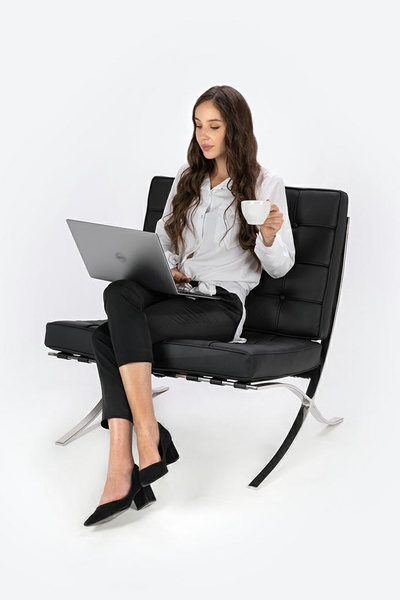 Siedzisko jest na wysokości 46 cm i zostało wykonane z selekcjonowanej skóry włoskiej, dzięki czemu cechuje je wysoka trwałość i doskonały wygląd.