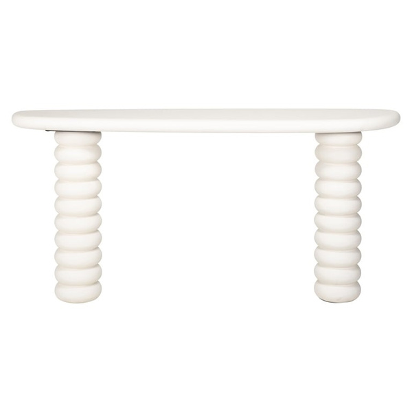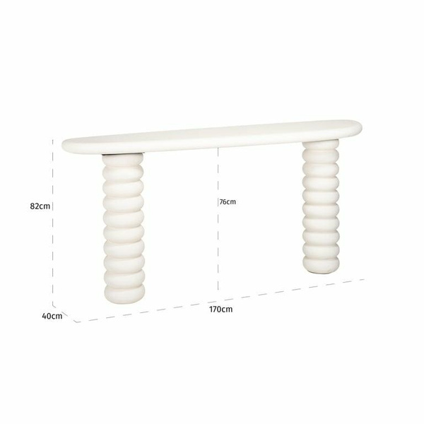 Konsola ta wyróżnia się unikalnymi, eleganckimi kształtami ukazanymi na podstawie oraz blacie.