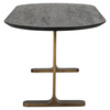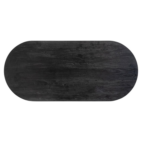 Piękny, owalny blat wykonano z drewna Mango a mosiężną podstawę ze stali w kolorze matowego złota.