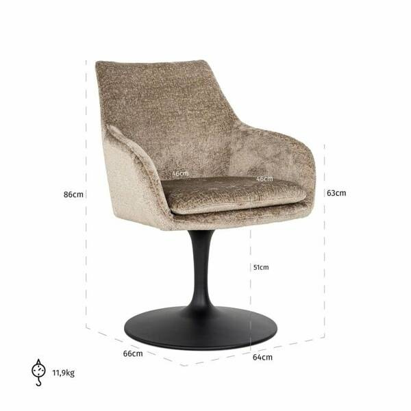 RICHMOND krzesło obrotowe MARLON ciemnobeżowe. Wyróżniające się ponadczasowym designem krzesło obrotowe Marlon to wszystko, czego potrzebujesz, aby stworzyć stylowe i przytulne biuro, gabinet, jadalnię lub inne pomieszczenie. Siedzisko zostało wykończone przyjemną w dotyku tkaniną szenilową o nazwie Bergen 104 taupe chenille. Czarna podstawa wykonana została z metalu i posiada funkcję obrotową. Dostępne inne wersje kolorystyczne. Wymiary: wys. 87 cm / szer. 63,5 cm / gł. 66,5 cm Waga netto: 11,8 kg.