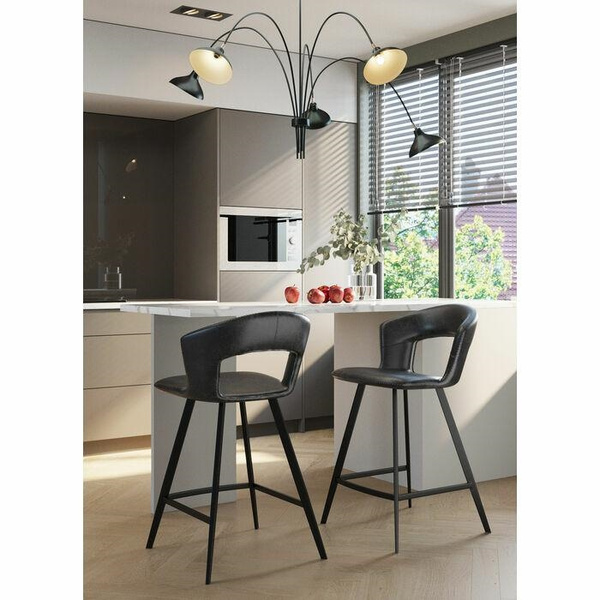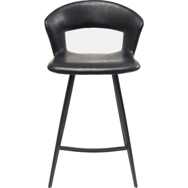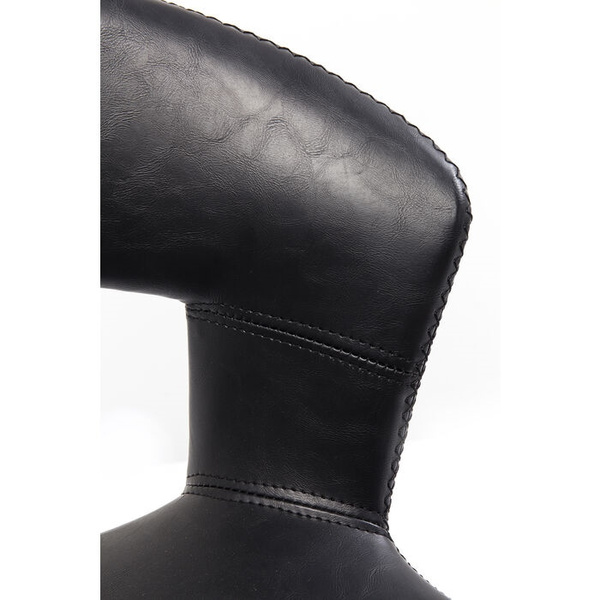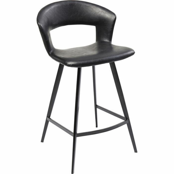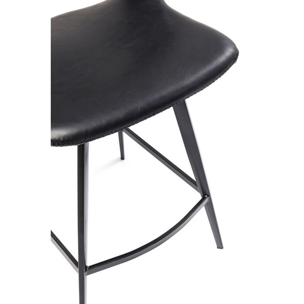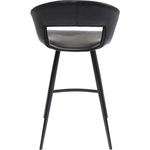 KARE krzesło barowe REUNION. Prosta, minimalistyczna forma idealna do nowoczesnych wnętrz. Designerskie, czarne siedzisko wykonano z poliuretanu imitującego skórę w stylu Vintage. Delikatną podstawę wraz z podnóżkiem wykonano ze stali w klasycznej czerni. Reunion to sposób na stylowe, loftowe wyposażenie baru lub kuchni. Dostępne także krzesło z kolekcji. Wymiary: wys. 90,5 cm / szer. 53 cm / gł. 53 cm Wysokość do krawędzi siedziska: 65 cm Waga: 6 kg.