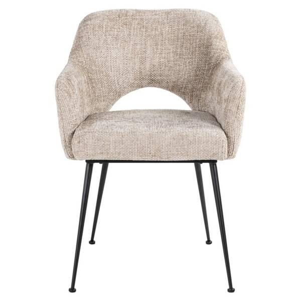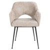 RICHMOND krzesło JENTHE beżowe. Krzesło z podłokietnikami o ponadczasowym designie. Kształtne oparcie wykończone jest beżową tkaniną o nazwie FR-Renegade desert 109. Czarną, delikatną podstawę wykonano z metalu. Całość tworzy szykowny i ciepły wygląd, który sprawdzi się w wielu wnętrzach. Ważnym atutem jest użycie materiałów ogniotrwałych. Wymiary: wys. 80 cm / szer. 56 cm / gł. 61 cm Waga netto: 7,4 kg.