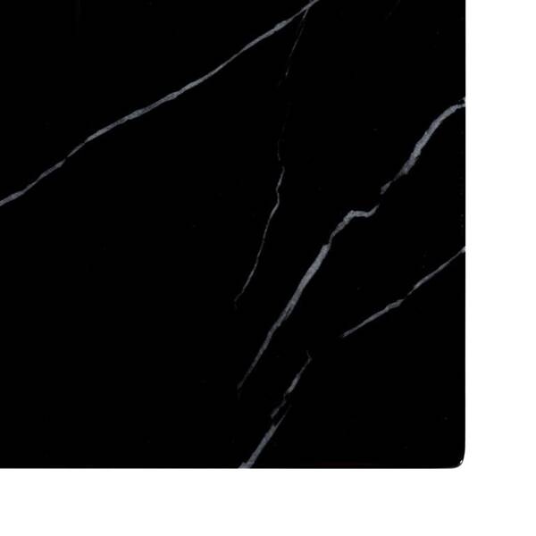 Do zrobienia blatu użyto mocnego i trwałego konglomeratu imitującego marmur o czarnej ponadczasowej kolorystyce.