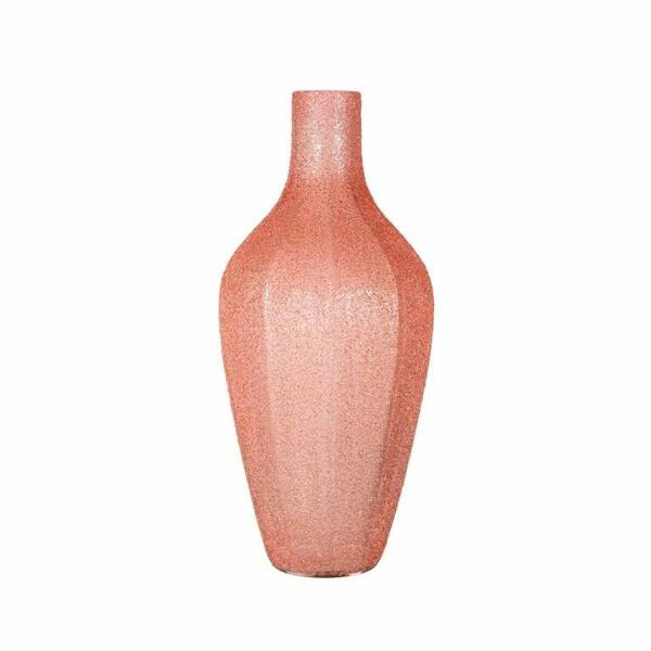 Piękny wazon wykonano ze szkła i wzbogacono ciekawym różowym wykończeniem.