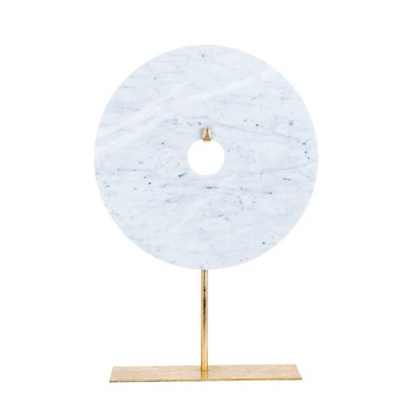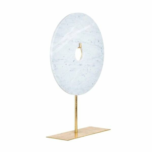 Piękną stojącą figurkę wykonano z wysokiej jakości żywicy, białego marmuru i metalu w złotym kolorze.