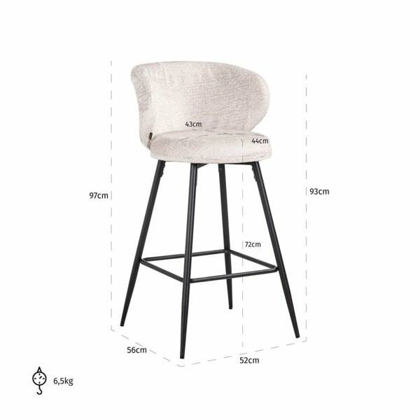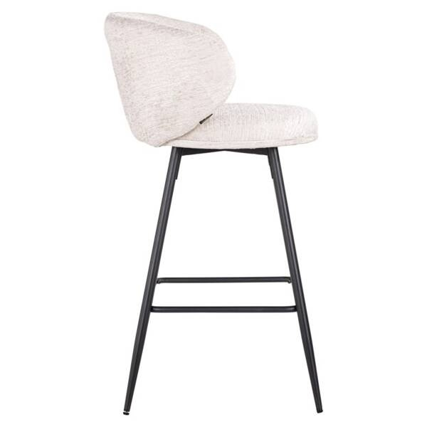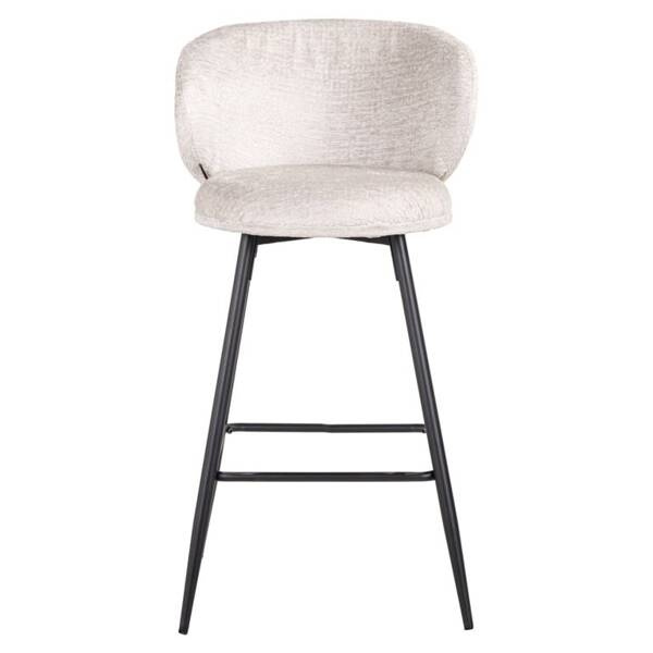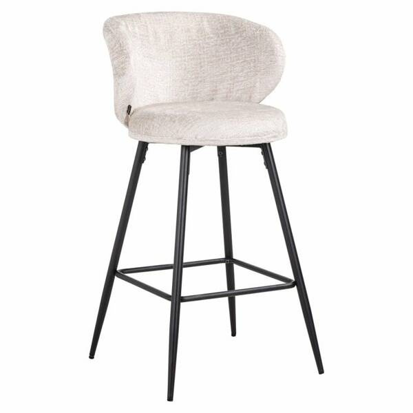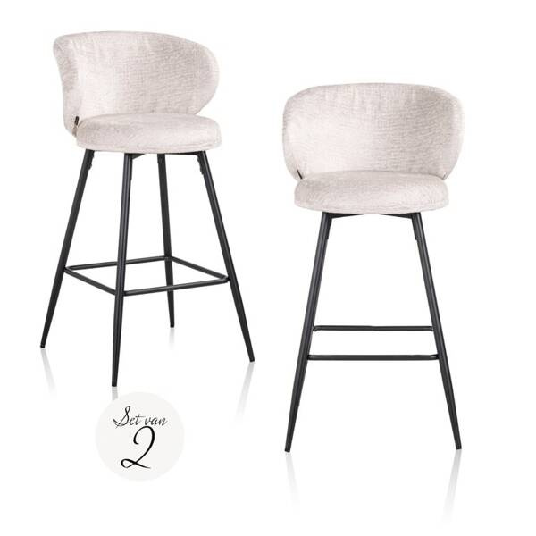 RICHMOND zestaw 2 krzeseł barowych MIMI. Mimi charakteryzuje się szykownym oraz ponadczasowym wyglądem. Kształtne oparcie oraz siedzisko wykonano z pięknej, jasnobeżowej tkaniny o nazwie Fusion cream 02. Jest to elegancka tkanina, która odpowiada wszystkim aktualnym trendom. Czarną podstawę z podnóżkiem wykonano z metalu w kolorze czarnym. W zestawie znajdują się 2 sztuki produktu. Dostępna także czarna oraz zielona wersja. Wymiary: wys. 97 cm / szer. 52 cm / gł. 56 cm Waga brutto: 15 kg.