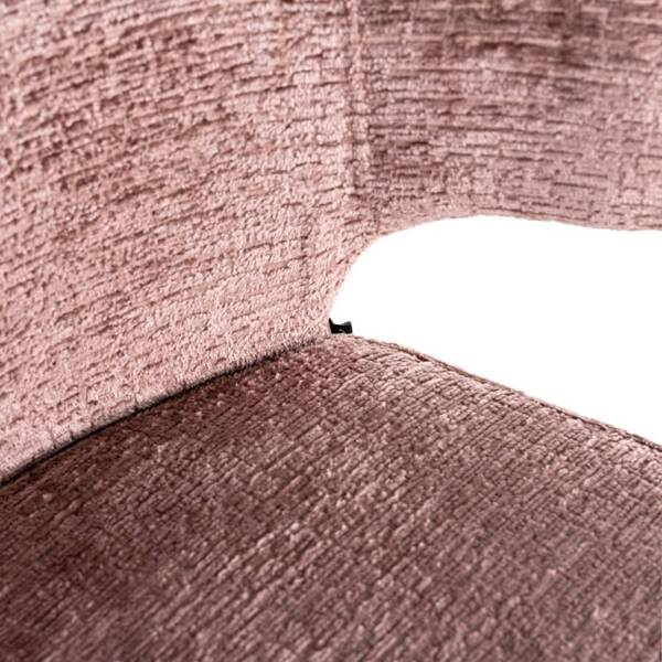Kształtne oparcie wykończone jest ciemnoróżową tkaniną o nazwie Fusion pale 200.