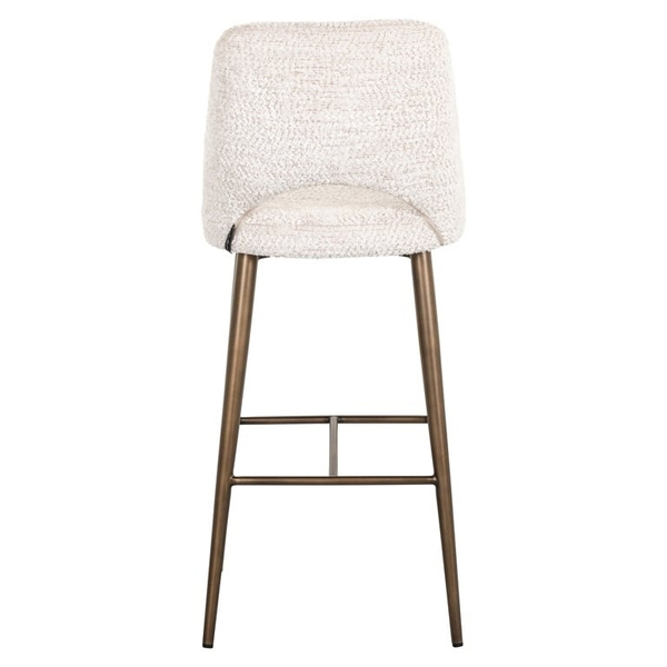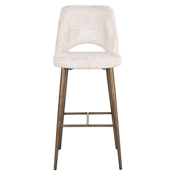 Dzięki smukłej sylwetce, metalowej podstawie z podnóżkiem w mosiężnej kolorystyce i zgrabnemu beżowemu siedzisku (100% poliester).