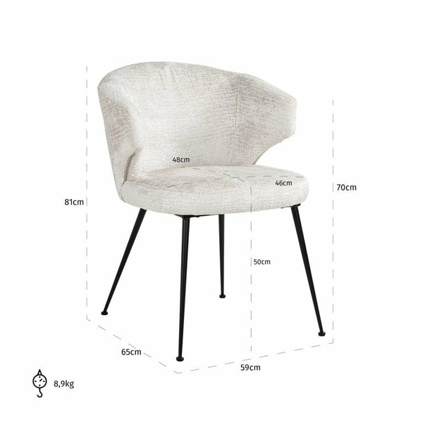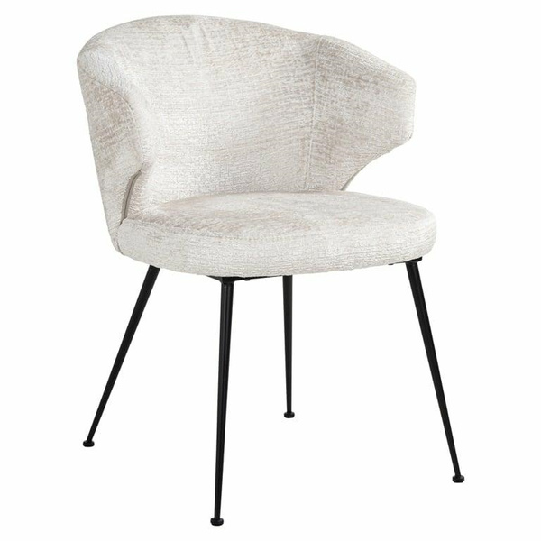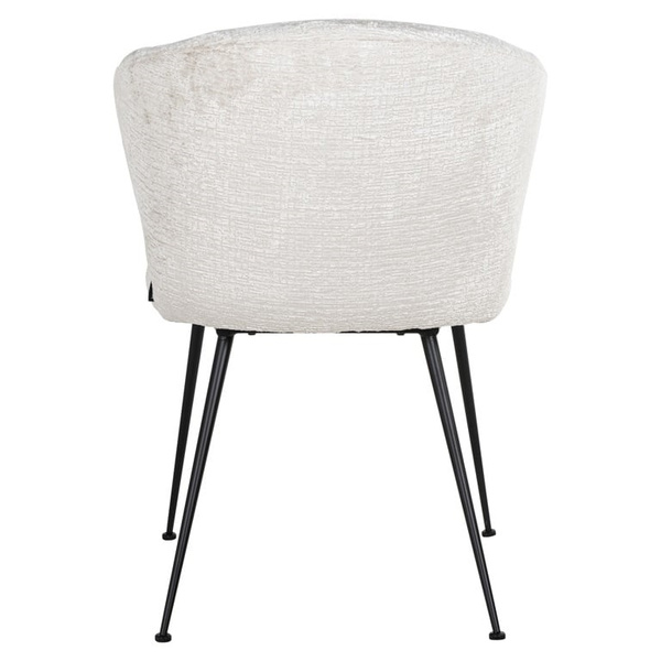 Kształtne oparcie wykończone jest modną jasną tkaniną Boucle.