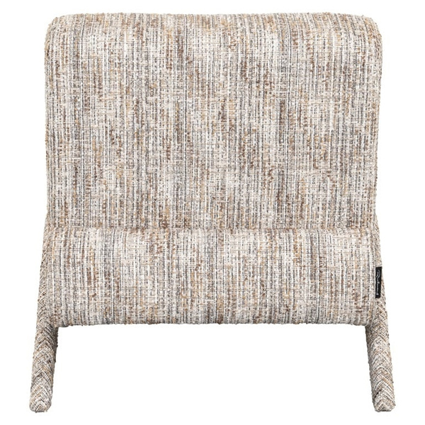 Wykonany z pianki, bawełny oraz sklejki, fotel ten jest w całości pokryty luksusową tkaniną w kolorze Greige coco z beżowym wzorem, inspirowanym stylem domu mody Chanel. Jego klasyczna forma na nóżkach nadaje mu lekkości, a jednocześnie zapewnia wygodę.