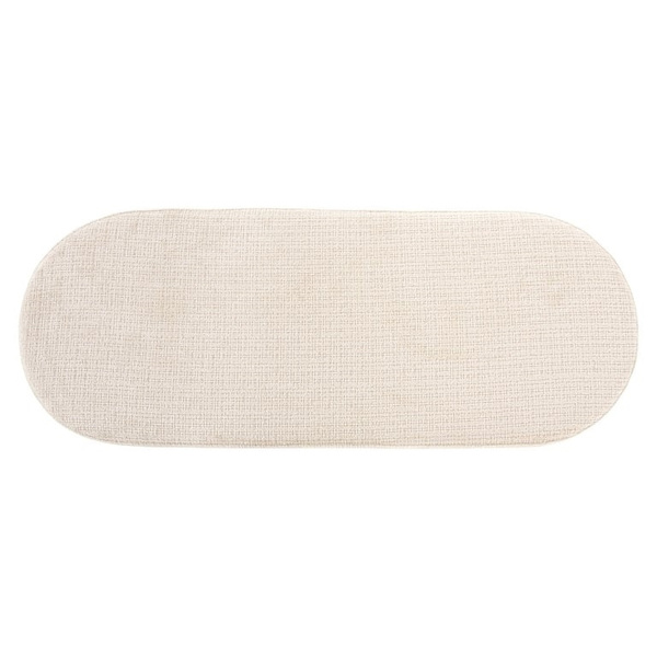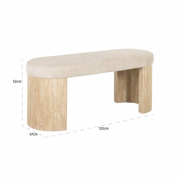 Podłużne siedzisko pokryte jest piękną, beżową tkaniną z poliestru, co zapewnia komfort użytkowania.