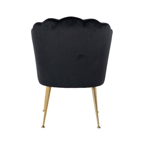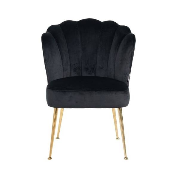 RICHMOND krzesło PIPPA BLACK - welur, podstawa złota. Krzesło Pippa marki Richmond Interiors jest tapicerowane welurem (100% poliester) w czarnym odcieniu. Podstawa wykonana została ze stali nierdzewnej w kolorze złotym. Zastosowany welur w tym krześle jest bardzo przyjemny w dotyku, wygodny oraz łatwy w czyszczeniu. Oparcie w kształcie muszelki to totalny Must Have tego sezonu! Dostępne również inne wersje kolorystyczne oraz krzesła barowe. Wymiary: wys. 86 cm / szer. 66 cm / gł. 64 cm Wysokość do krawędzi siedziska: 48 cm Waga netto: 10,4 kg.