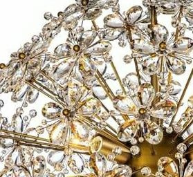 Lampa wyposażona jest w 6 żarówek, które rozpraszają światło przez liczne kryształowe elementy, tworząc piękne refleksy.
