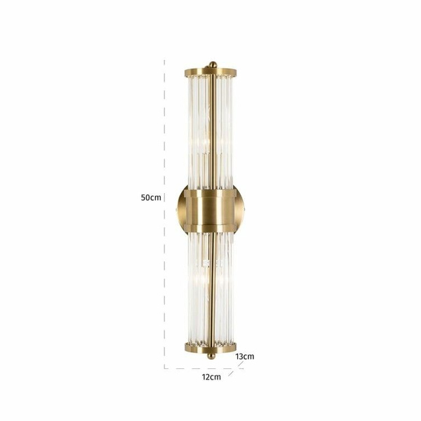 Smukła, cylindryczna forma kinkietu, wykonana z metalu i szkła, emanuje luksusem i finezją.
