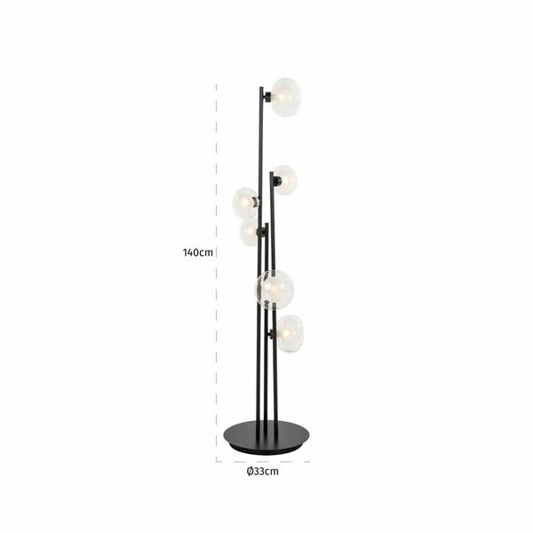 Wyróżnia się estetycznym designem, gdzie delikatne, szklane klosze rozmieszczone są na metalowych prętach, tworząc harmonijną kompozycję.