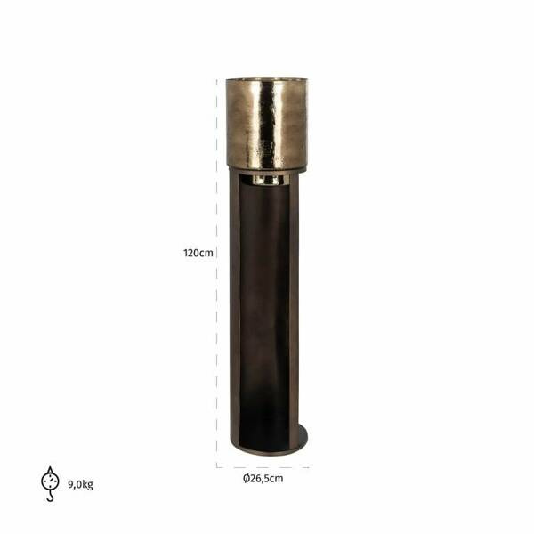 RICHMOND świecznik DANE L. Elegancka dekoracja wykonana z metalu i szkła, dostępna w dwóch rozmiarach, co pozwala na stworzenie harmonijnego zestawu dekoracyjnego. Minimalistyczna, cylindryczna forma oraz efektowne wykończenie nadają luksusowy wygląd, który idealnie wpisuje się w nowoczesne wnętrza. Umieszczenie świecznika w parze, z każdym rozmiarem ustawionym obok siebie, potęguje efekt wizualny, wprowadzając wyjątkowy klimat i tworząc nastrojowe chwile. Dane to doskonały wybór dla osób ceniących wyrafinowaną prostotę i styl. Wymiary: wys. 120 cm / szer. 26,5 cm / gł. 26,5 cm Waga netto: 9 kg.