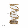 RICHMOND świecznik JADEN L szczotkowane złoto. Unikalny i stylowy dodatek wykonany z aluminium i szkła w eleganckim szczotkowanym złocie. Spiralny wzór o strukturze koralików otacza szklany klosz, nadając całości lekkości i dynamiki, co czyni go interesującym akcentem dekoracyjnym. Dostępny w dwóch rozmiarach, świecznik Jaden świetnie prezentuje się zarówno pojedynczo, jak i w zestawieniu obu wersji, tworząc elegancką kompozycję. Luksusowe wykończenie i oryginalna forma wprowadzą do wnętrza wyrafinowany klimat i przytulne światło. Wymiary: wys. 39,5 cm / szer. 20 cm / gł. 20 cm Waga netto: 2,7 kg.